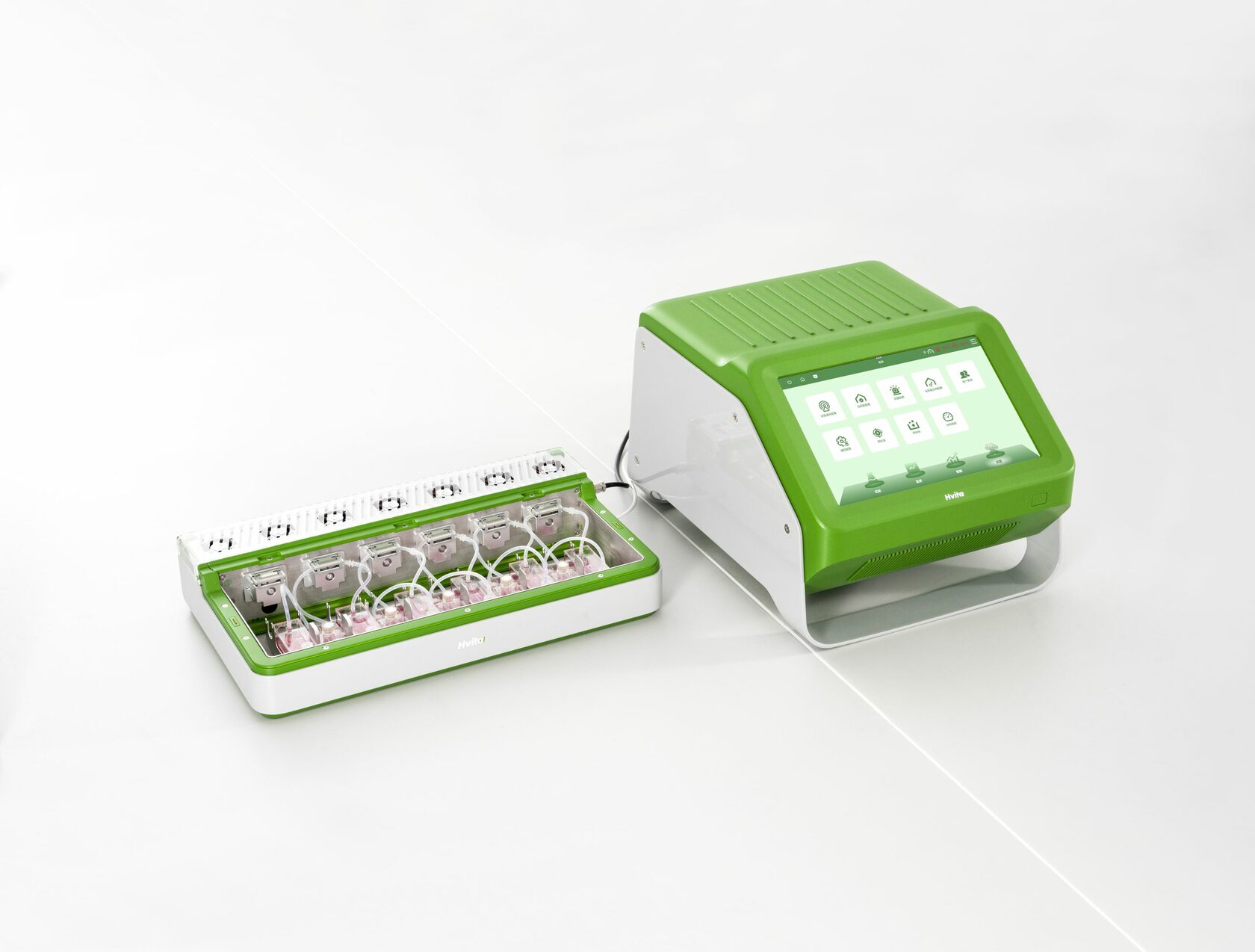 Countstar Hvita är ett perfusionsbaserat 3D‑odlingssystem utvecklat för långsiktig och fysiologiskt relevant cellkultur. Genom kontinuerligt medieflöde och realtidsövervakning skapas en stabil mikromiljö som stödjer hög cellviabilitet och minskad metabolitbelastning. Odlingsmodulen kan placeras direkt i ett inverterat mikroskop, vilket möjliggör visuell inspektion utan att störa kulturen. Systemet erbjuder kontrollerade odlingsparametrar såsom temperatur, gasutbyte och flödeshastighet, och är kompatibelt med många celltyper, inklusive CHO, HEK, stamceller, hybridom och primära celler.